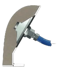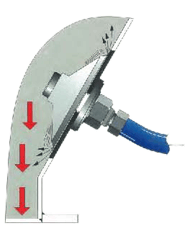 The compressed air enters the container via the mounting bolts/pins of the vibrating pad and comes out from beneath the soft neoprene/silicone membrane. The flow of raw materials is promoted through the combination of compressed air injection and soft membrane vibration.