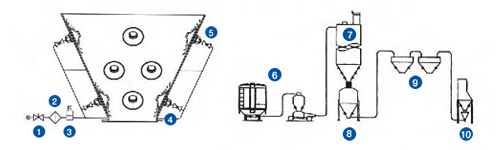 Once the air is turned off, the materials become compact. The soft silicone rubber/neoprene rubber membrane that adheres to the inner wall of the container has a double-lip shape, so no raw material of any kind can enter the compressed air piping.