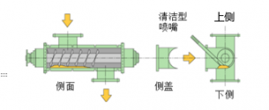 本體的點(diǎn)檢清掃口為水平方向,清掃時(shí)也沿著水平方向進(jìn)行,清掃殘留在槽內(nèi)的物料時(shí)