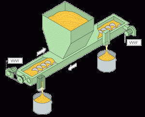 從外觀上看是w溝槽的螺旋輸送機(jī),實際上驅(qū)動系統(tǒng)是獨(dú)立的。并且,可以分別向相反方向移送·供給物料。使用變頻器可以分別設(shè)置轉(zhuǎn)速。 優(yōu)點 1.能夠連續(xù)隨意控制左右供給量。 2.在罐體內(nèi)部通過針對粉體物料的剪切力,使得防架橋的效果非常好。 3.因為螺旋輸送機(jī)的間距大,即使排出性很差的濕粉,也可以輕易排出。