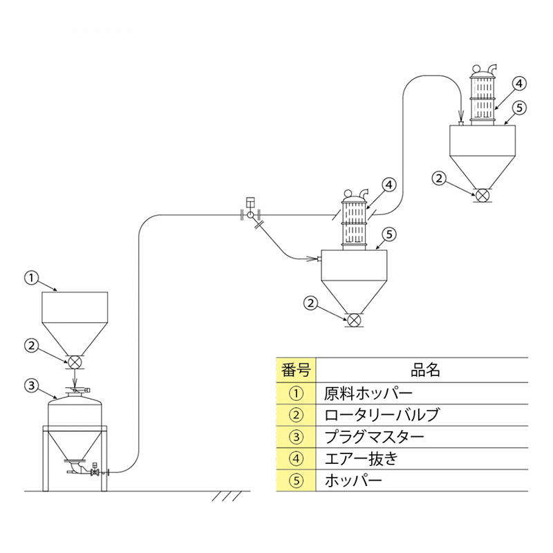 輸送配管直徑 | 輸送空氣量 Nm3/min |